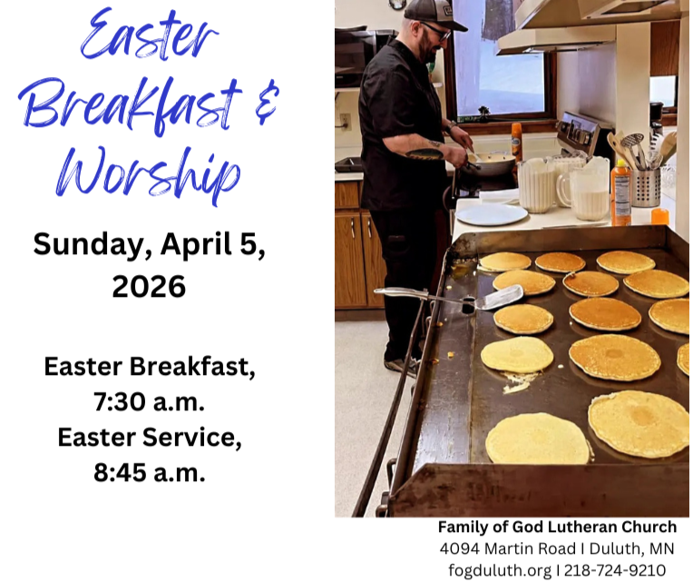Invite your friends and family to Easter Worship and Breakfast! Menu will include scrambled eggs, sausage, cinnamon roll, orange juice. A sign up for donations is posted by the kitchen. We’ll serve from 7:30 a.m.-8:30 a.m.